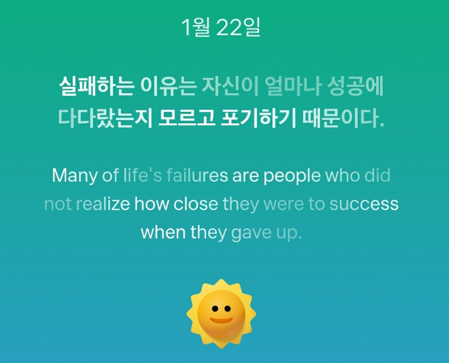 실패하는 이유는 자신이 얼마나 성공에 다다랐는지 모르고 포기하기 때문이다.