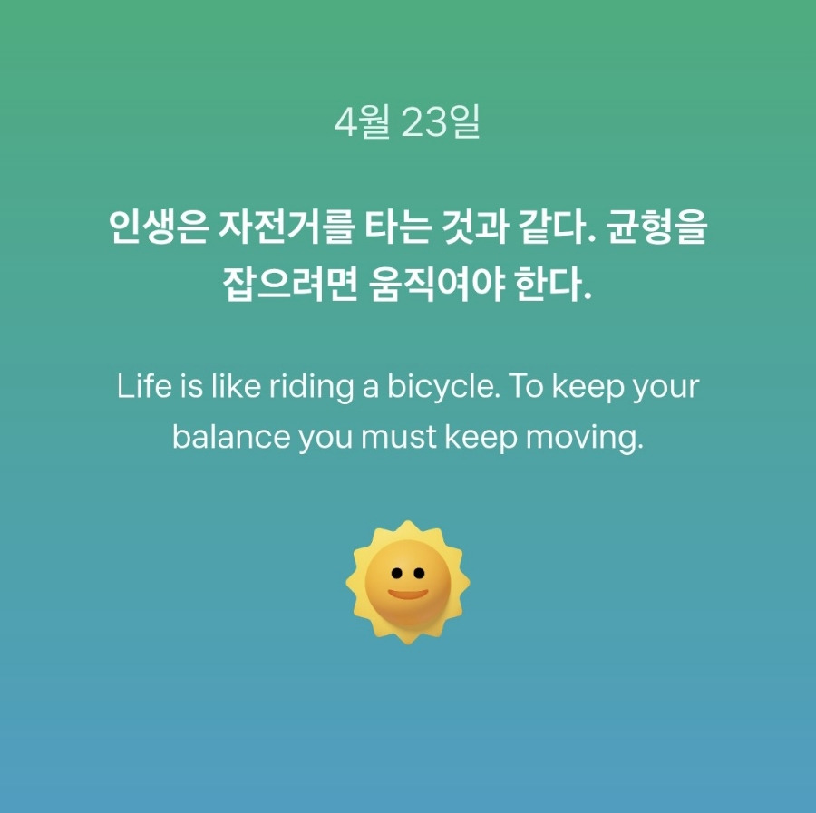 인생은 자전거를 타는 것과 같다. 균형을 잡으려면 움직여야 한다.